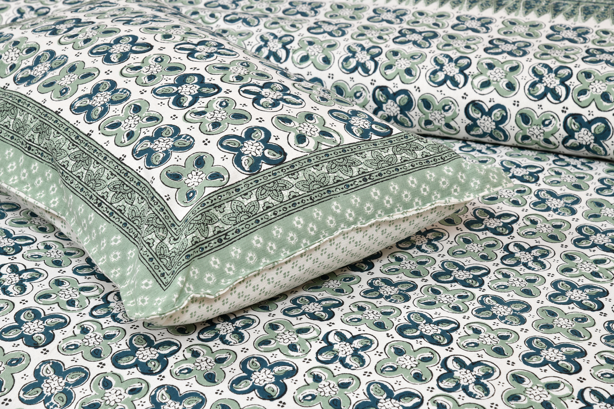 Ojas Fine Cotton Block Print King Size Bedsheet + 2 Pillow Covers