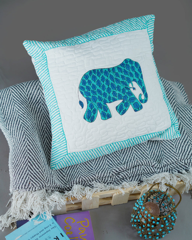 A PAIR OF HAND BLOCK PRINTED 16 BY 16 INCHES CUSHION COVER