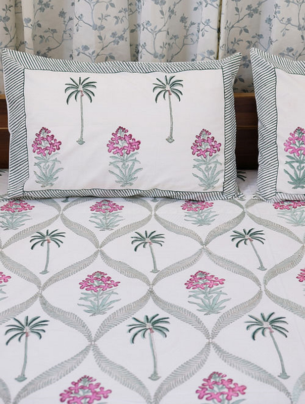 Seher Premium Cotton Block Print King Size Bedsheet + 2 Pillow Covers