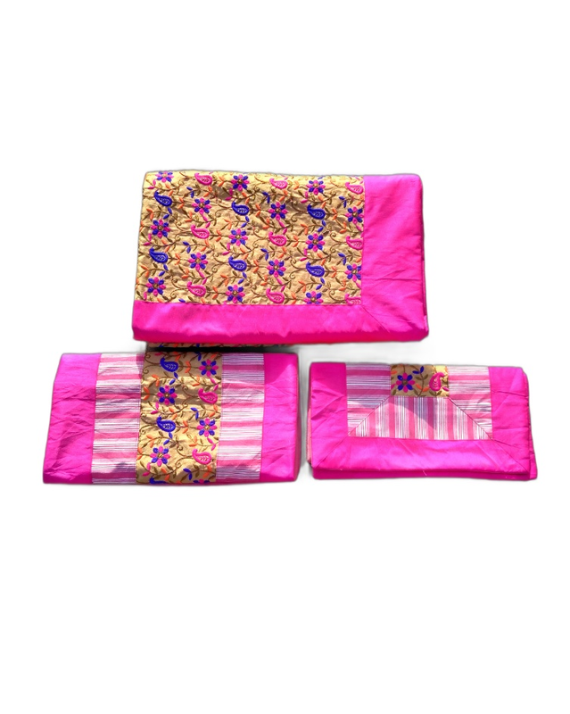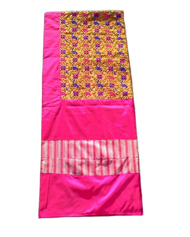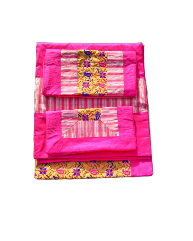 Soft Silk Embroidery Indian King Size 90×108 Bedcover With 2 Pillow Cover And 2 Cushion Cover Set, Indian Silk Embroidered Bedsheet Set